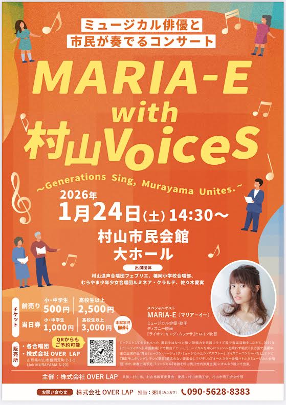 2026年1月24日(土)村山市民会館大ホールにて MARIA-E with 村山 VOICES を開催いたします。